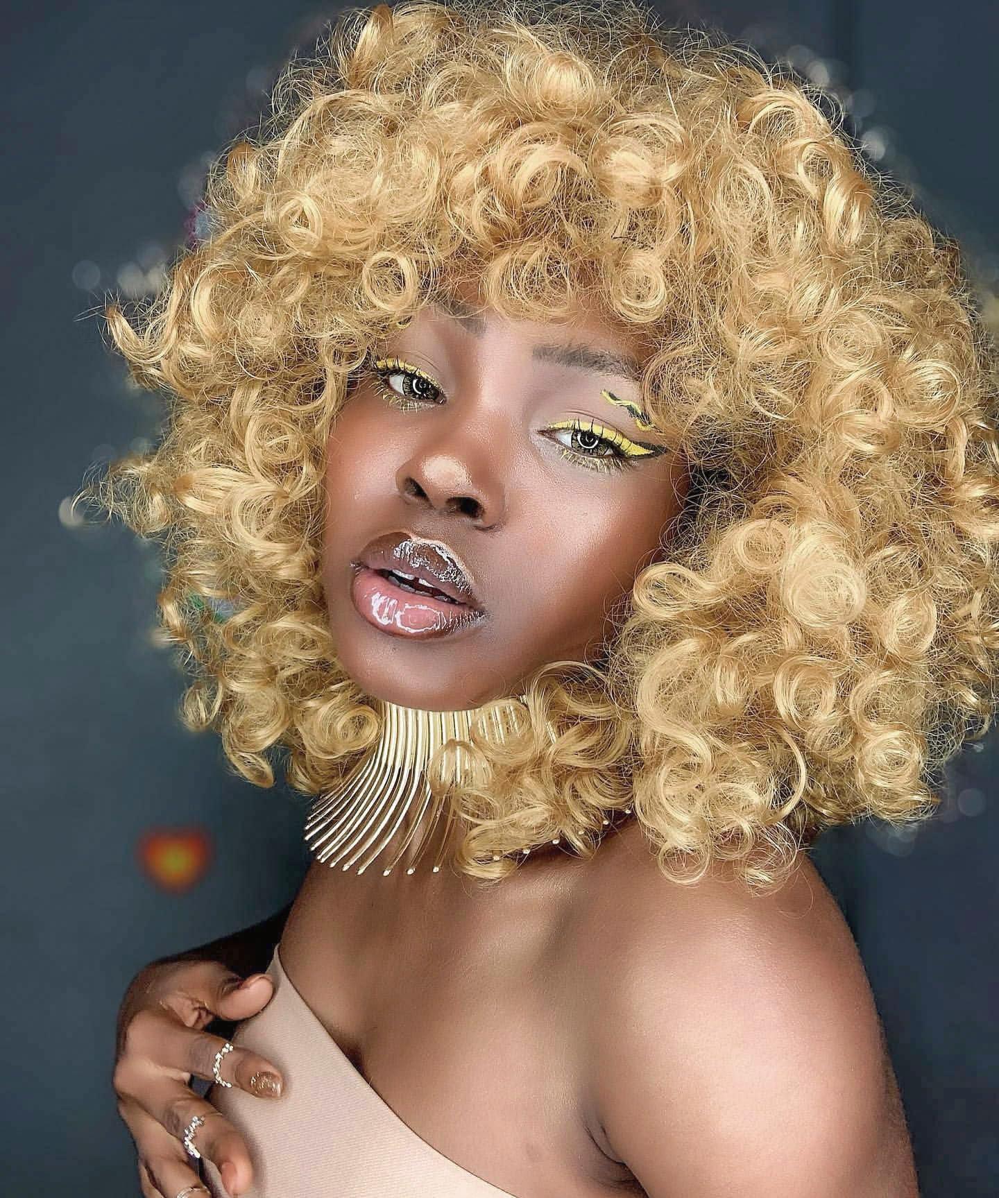 CurlCOO CurlCOO Blonde Curly Wigs for Black Women Short Curly Wig with Bangs Soft Big Loose Cute Afro Kinky Curly Hair 14 Inch Synthetic Wig for Black Women(Blonde)