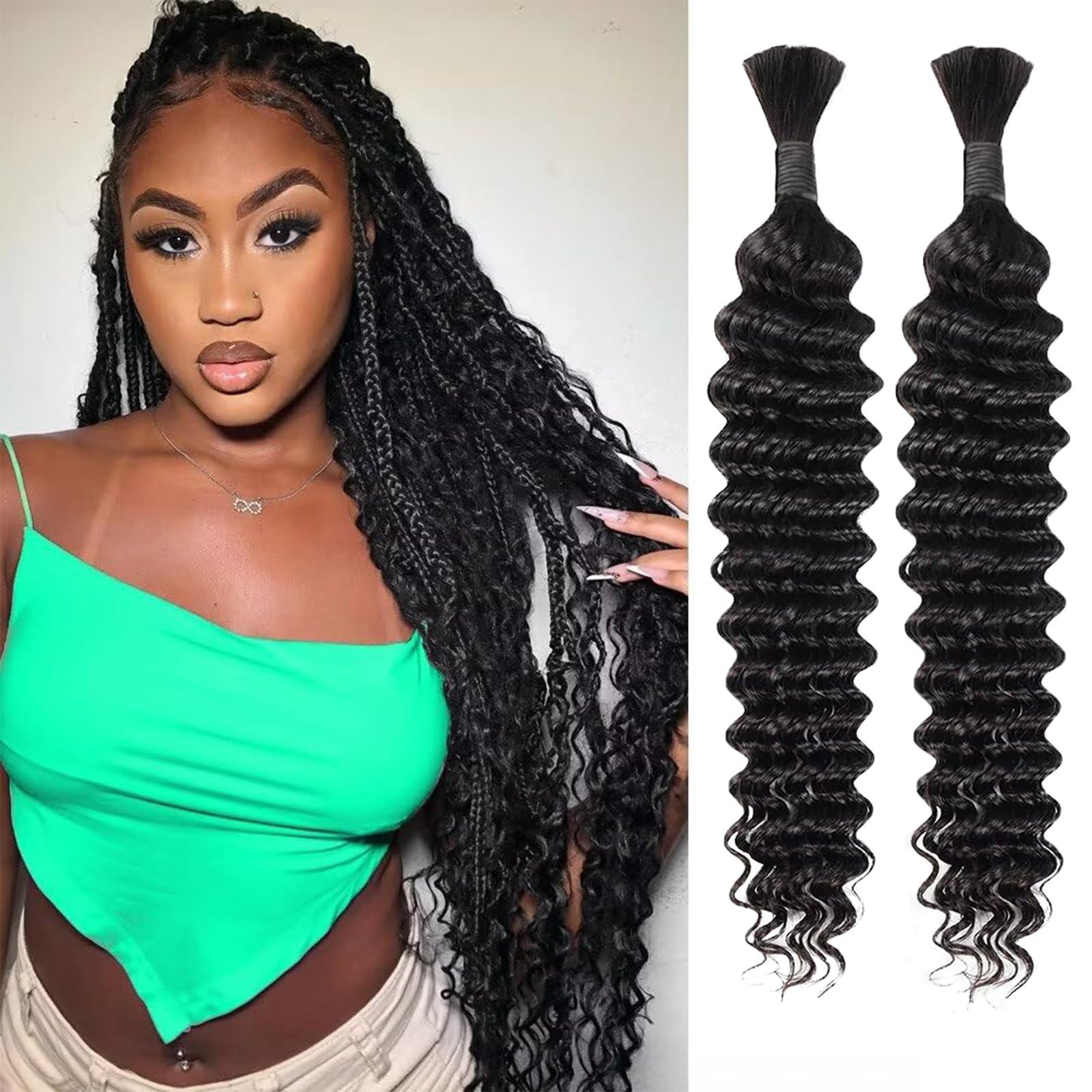 - 2.Deep Wave Human Hair Bundles for Braiding Human Hair with Soft&sMooth Texture,Bouncy and Glossy.Human Braiding Hair Wet and Wavy Bulk Human Hair with Two Bundles Per Pack Design (total 100gMore Richer Hair Weights.The Bulk Human Hair for Braiding No Weft Design Allows You Freely Pick According to You