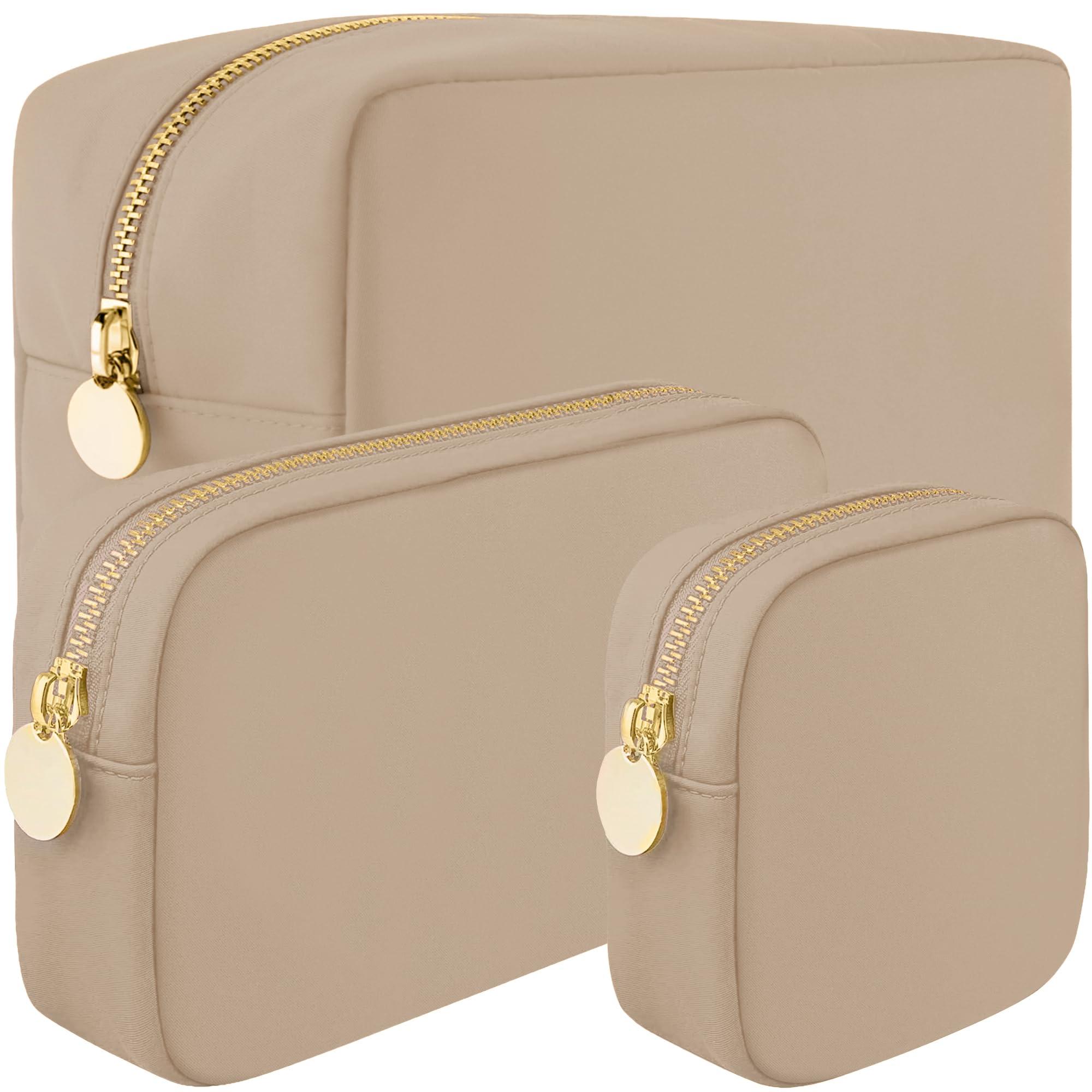 - 3 piece cosmetic bag set includes Large, Small and Mini sizes, perfect for storing all your makeup essentials, including makeup brushes, lipsticks, eyeshadow palettes. Use as a skincare bag, cute makeup bag small toiletry bags or as a whole 3 piece makeup bag set