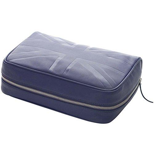 David Hampton's large cosmetic bag offers both style and practicality for storing your cosmetics, make up or toiletries. Hardwearing and durable, the leather cosmetic bag has wipe clean lining, and is spacious inside, with one large internal pocket and five other elasticated pockets. With an external zip providing security when travelling, this product is a perfect overnight bag. Stylish designed and discreetly embossed with the Union Jack flag, David Hampton's large cosmetic bag is a classic piece from the Britannia collection.