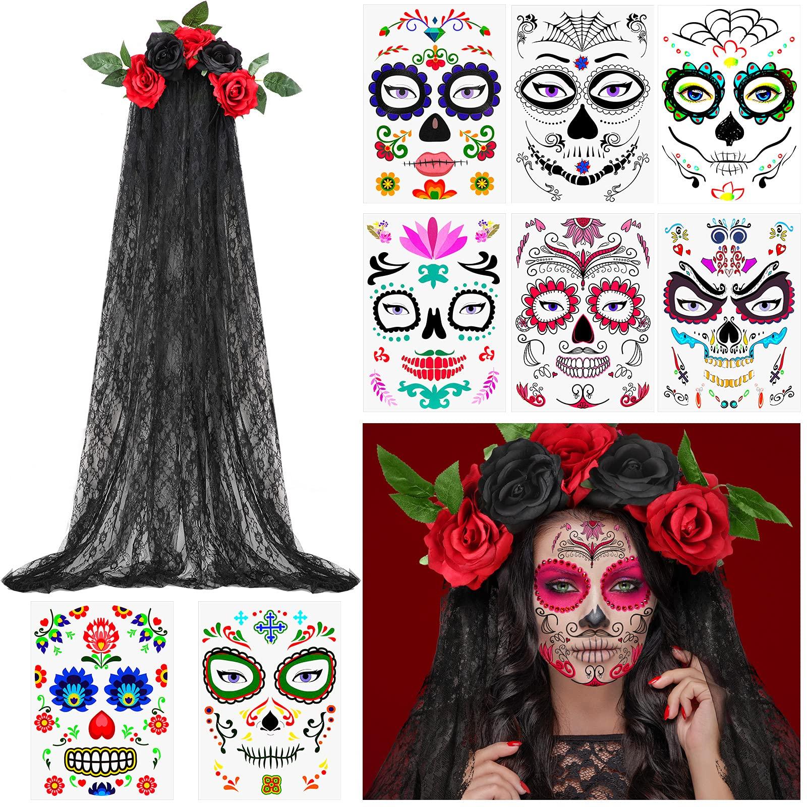 - Wide Applicability: the Halloween crown veil headpiece and temporary face tattoos can be applied in many occasions, suitable for Halloween party, masquerade, costume play, clubs, birthday party, carnival, role-playing game and more