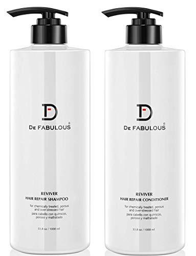 De Fabulous Reviver Shampoo & Conditioner Set Enriched with Vitamin E rejuvenating beads, Reviver reconstructs and strengthens extremely damaged and fragile hair. Formulated with olive fruit extract, meadow foam seed extract, sweet almond extract and wheat-amino acid proteins, deep intensive moisture is restored without weighting down hair. Reviver Hair Repair Collection: Every day thirst-quenching hair repair therapy. Revivers rejuvenating formula works with our unique wheat-amino acid-protein complex, soy and oat proteins to revitalize and restructure even the most fragile, chemically treated hair. Size: 8.5 oz. 33.8 oz. 1 gal. Key Ingredients: Soy, oat and wheat protein complex Terminology: Replenishes lost protein Restores needed moisture Revitalizes and restructures Usage: For processed, fragile hair May be used as every-day formula