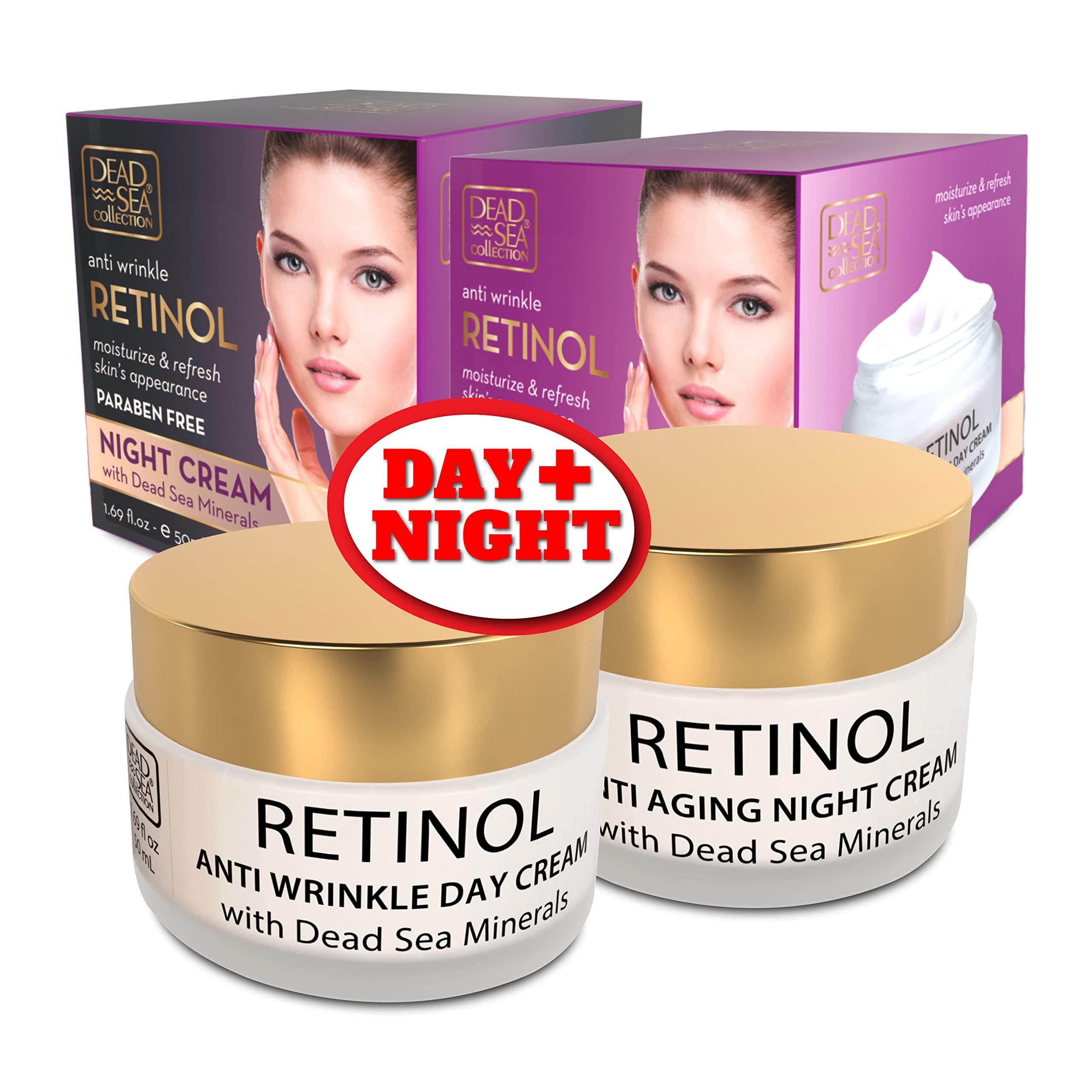 Dead Sea Collection Anti-Wrinkle bundle Day+Night Cream for Face with Retinol - Anti Aging - Skin Care with Sea Minerals - Nourishing, Moisturizer, Hydrating and Smoothing Face Cream 2 X(1.69 fl.oz)