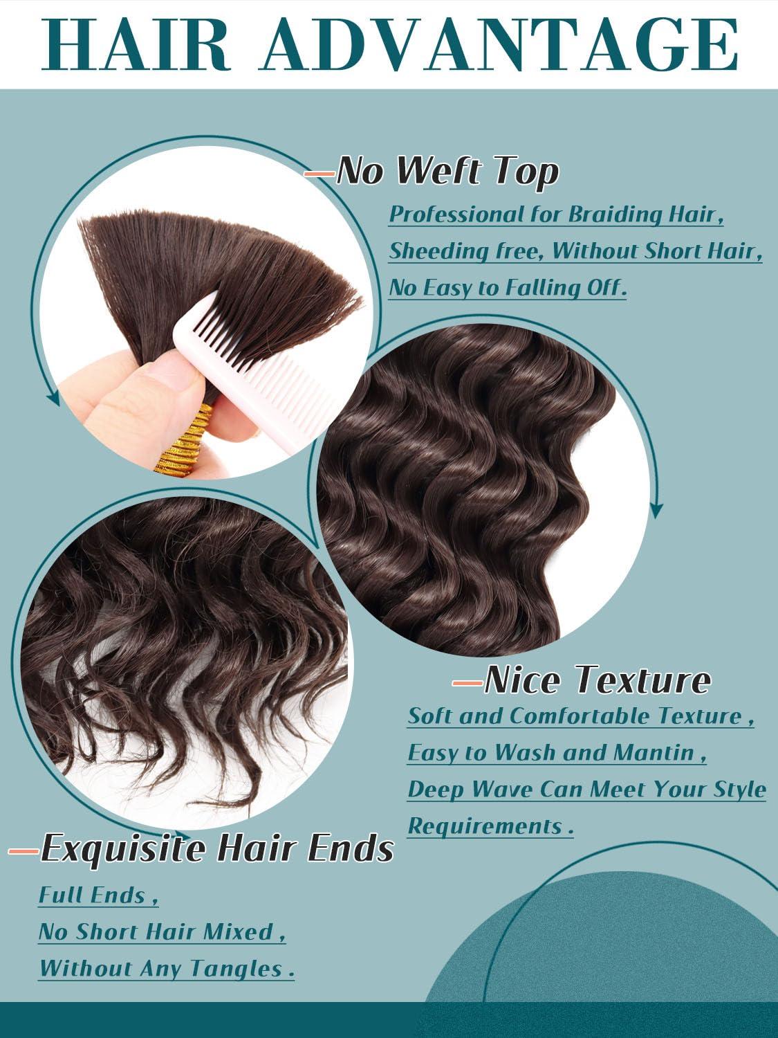 - Material: Deep wave bulk hair for braiding Hair is made with high quality synthetic hair, which is near to human hair; natural looking; soft touch; durable and sturdy; the texture is the same as human hair