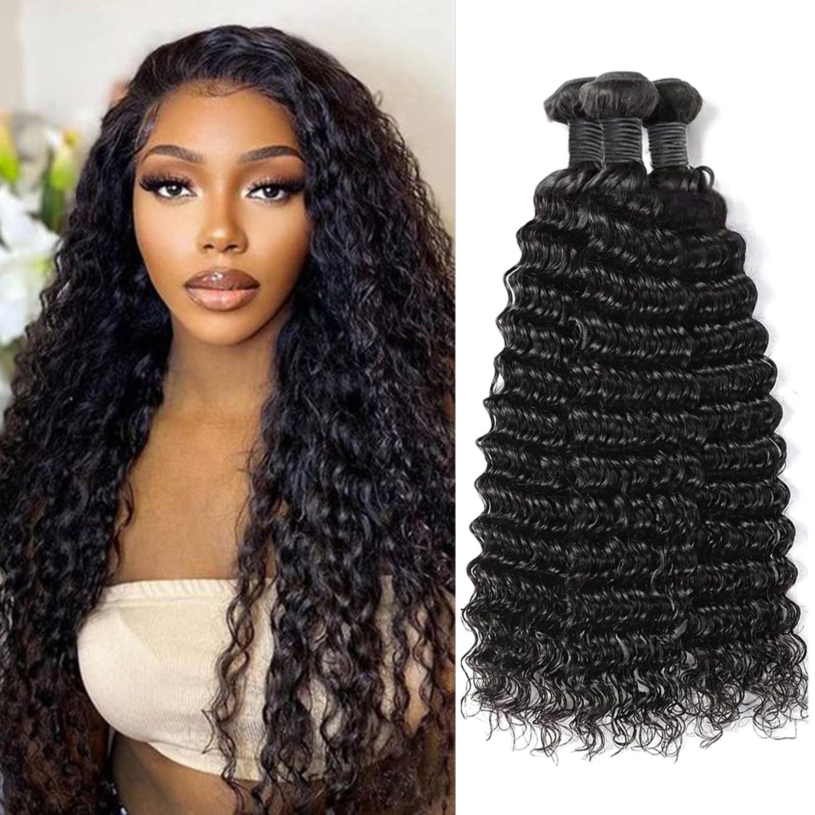 - High Quality: Deep wave human hair bundles for black women, double machine weft, tight and neat, full and thick, soft and bouncy. You can straighten, dye, press and bleach the hair.