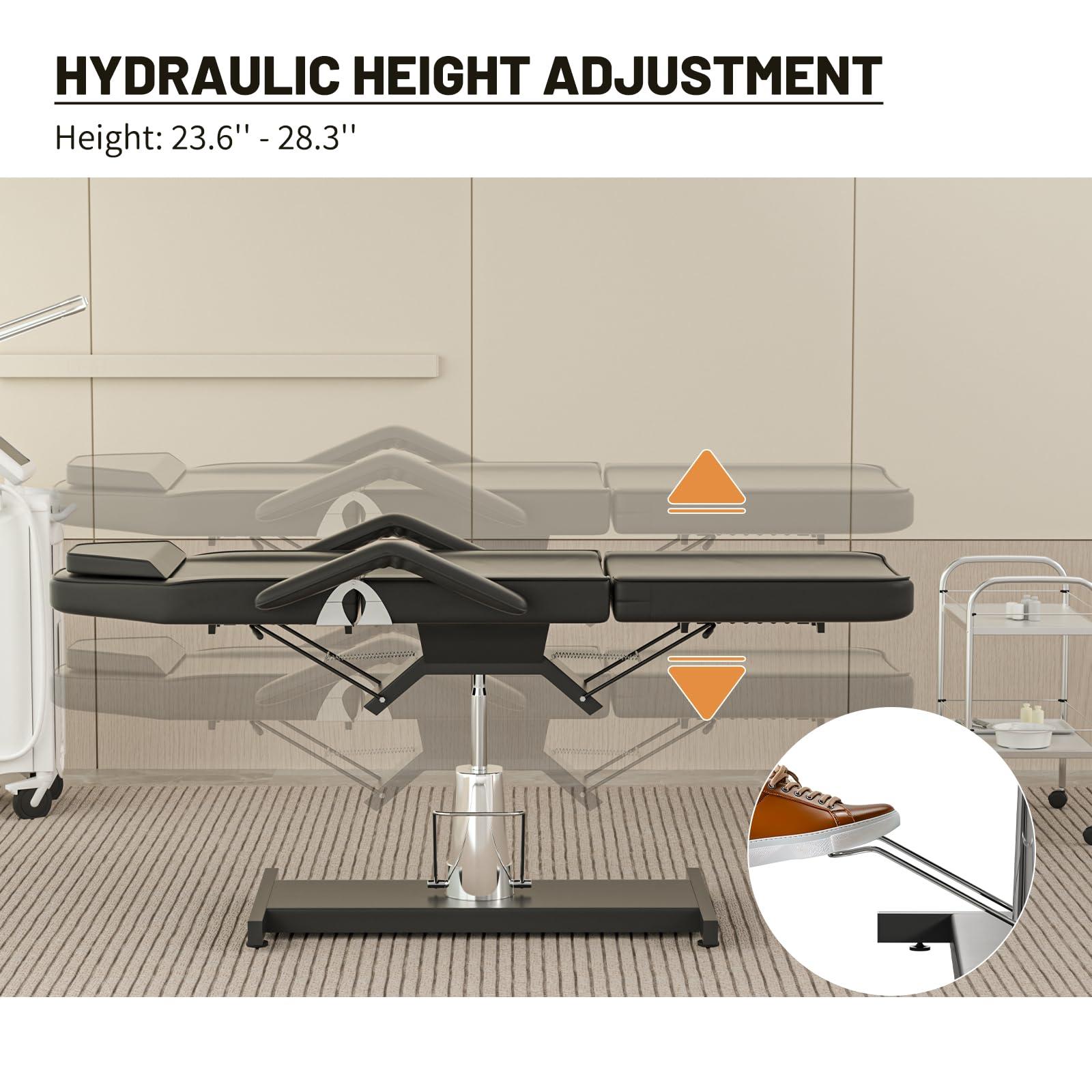 • HYDRAULIC TATTOO CHAIR MASSAGE TABLE: With a 360 swivel and lockable hydraulic pump, you can easily adjust the height of this Facial Bed chair from 23.6" to 28.3" and lock positions, providing more flexibility and more convenience to estheticians.