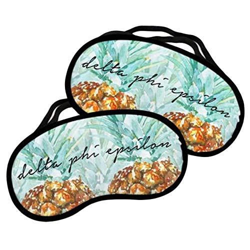 Delta Phi Epsilon Pineapple Eye Mask. Soft fleece style polyester on back side, neoprene on front with full color imprint. Two elastic bands on back, one size fits most. Approx 7.25\" wide by 3.25\" tall.
