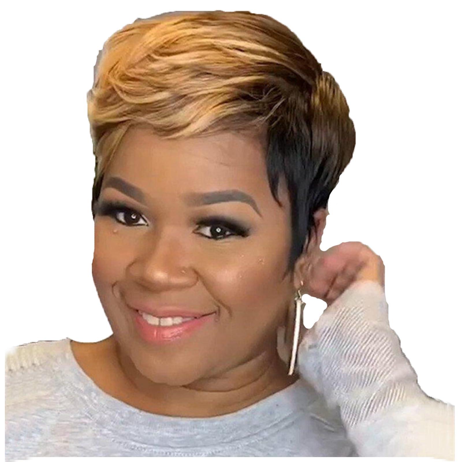 • Nature and reality- if you do not want to spend too much time styling your hair every morning why not choose short pixie wig. Simply tuck stray neckline hair under the extended neck for a neat, polished look. Our short wigs are available in grey wigs for women, brown wigs for women, white wigs for women, ash blonde wig for women and black wigs for women. The short hair wig with bangs close your own hair, not only suitable for white women, any other skin color women can try