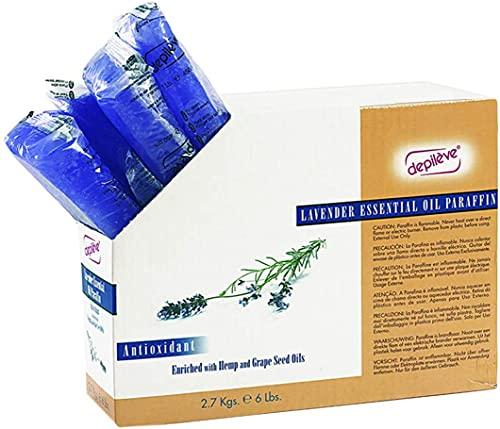 Depileve LAVENDER SCENTED PARAFFIN WAX -FOR PARAFFIN WAX DIP, 6 LBS. This spa wax refill has a new, antioxidant-rich formula enriched with hemp and grape seed oils to protect the skin from the damaging effects of free radicals and pollution. Depileve lavender paraffin wax for paraffin wax dip contains lavender essential oil, which conveys relaxing properties to soothe the hands and leave a delicate scent behind. This paraffin hand spa wax also softens the cuticles and deeply lubricates the skin for a soft and healthy appearance. The paraffin coating stimulates the blood circulation, and soothes and relaxes the client in a simple, luxurious treatment. This skin conditioning treatment is ideal to rejuvenate face, hands and feet. 6 lb. box.