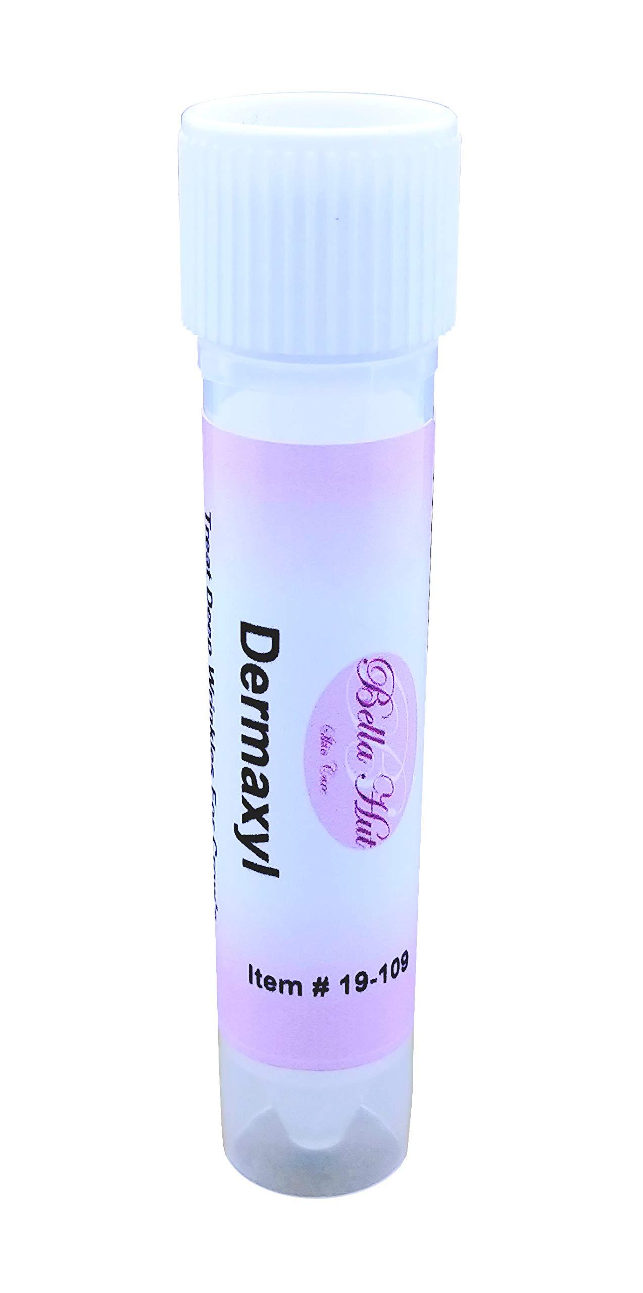 Der-max-yl (Palmitoyl Hexapeptide-12) is an anti-aging, wrinkle smoothing and cutaneous barrier repair ingredient. It stimulates cell communication and then repairs the age related skin damage. Cosmetically, this product is used in skincare and make-up aimed at preventing and fighting wrinkles. After only applying it once a day, for 56 days the results were dramatic: Volume of main wrinkle reduced on average by 13.7%- and reached as much as 36%! Depth of main wrinkle reduced on average by 10.1%- and as much as 27%! Surface occupied by deep wrinkles reduced on average by 40.3%-... and as much as 98%! Surface occupied by medium wrinkles reduced on average by 24.5%-... and as much as 86%! Usage Mix with Bellahut's gel base or cream base and a combination of our other premium peptides to create your own custom treatment that is tailored to your needs. For best results use at a .5% to 2% concentration, keep in mind 2% is the maximum suggested concentration level for this product. This complex can create multiple products as below: Eye products: eye firming cream, wrinkle cream Face products: face firming serum, facial firming toner/ spray Body products: body firming lotion