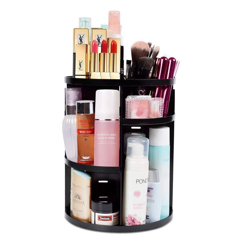 - ? Large storage space: 360-degree rotatable cosmetic storage box and standard storage box, you can easily store and organize your skin care products, lipstick, makeup brush, cosmetics, perfume, nail polish, eyeliner, blush, eyebrow pencil and so on.