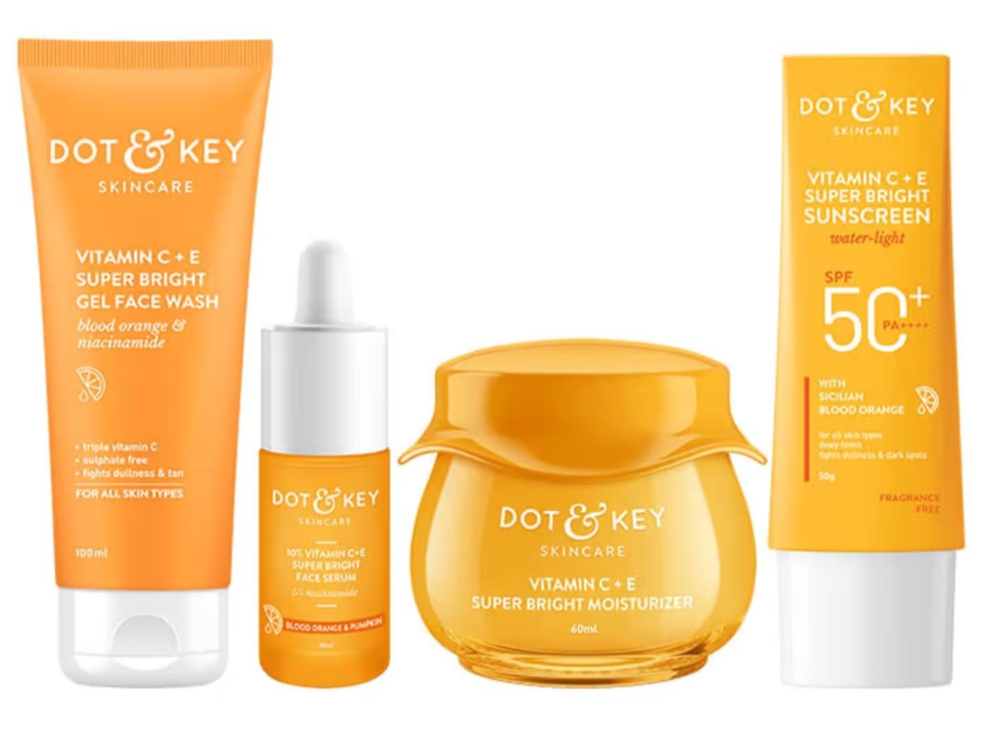 Vitamin C Gel Face Wash: Sulphate-free daily face wash with triple vitamin C for clean, even-toned & glowing skin. 10% Vitamin C+E Serum: Non-sticky serum with 5% Niacinamide to treat dullness, dark spots & pigmentation. Vitamin C+E Moisturizer: Non-comedogenic moisturizer with Triple Vitamin C & Sicilian Blood Orange for even-toned, visibly glowing skin. Vitamin C+E Sunscreen: Glow + protect SPF 50 water-light sunscreen for even-toned, glowing & protected skin every day.