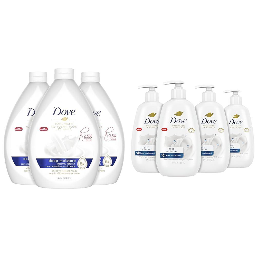 Dove Advanced Care Deep Moisture Hand Wash Pack of 3 for Soft, Smooth Skin More Moisturizers Than The Leading Ordinary Hand Soap, 34 oz and 4 Count 12 oz
