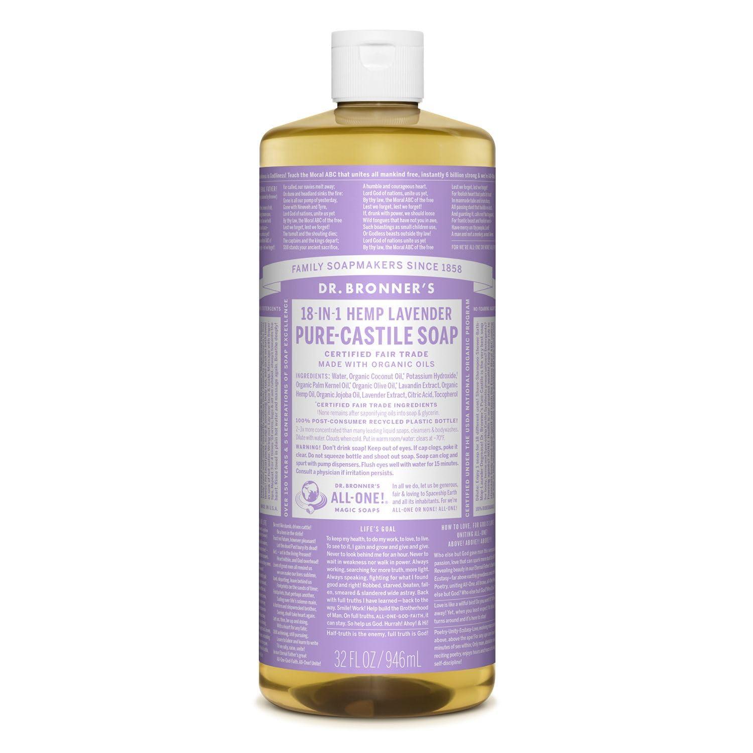 A relaxing fragrance for tired and stressed-out souls, Dr. Bronner's Lavender Castile Liquid Soap calms the nerves and soothes the body. Perfect just before bedtime or to start your day out with a tranquil, peaceful mind. All soaps are certified organic under the USDA National Organic Program. All soaps are also certified Fair Trade. Packaged in 100% post-consumer recycled (PCR) plastic bottles.