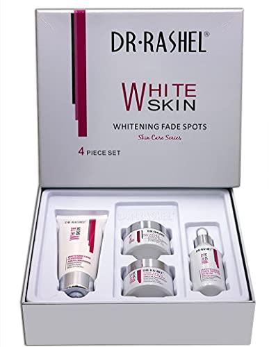 Dr. Rashel Whitening Fade Spot Kit is a complete skincare system designed to brighten skin, reduce the appearance of dark spots, and create an even, radiant complexion. It helps to even out skin tone while providing moisture and nourishment to the skin, promoting a youthful, glowing appearance. The products in the kit are suitable for all skin types and can be used for daily skincare routines to achieve visible results over time. How to Use: Cleanse: Start by using the facial cleanser to remove dirt, oil, and makeup. Serum: Apply the Fade Spot Serum to areas with dark spots , Day/Night Cream: Apply the Day Cream during the day and the Night Cream before bed for 24-hour skin nourishment and glowing skin. Consistency: For best results, use the kit consistently over several weeks as per the instructions.