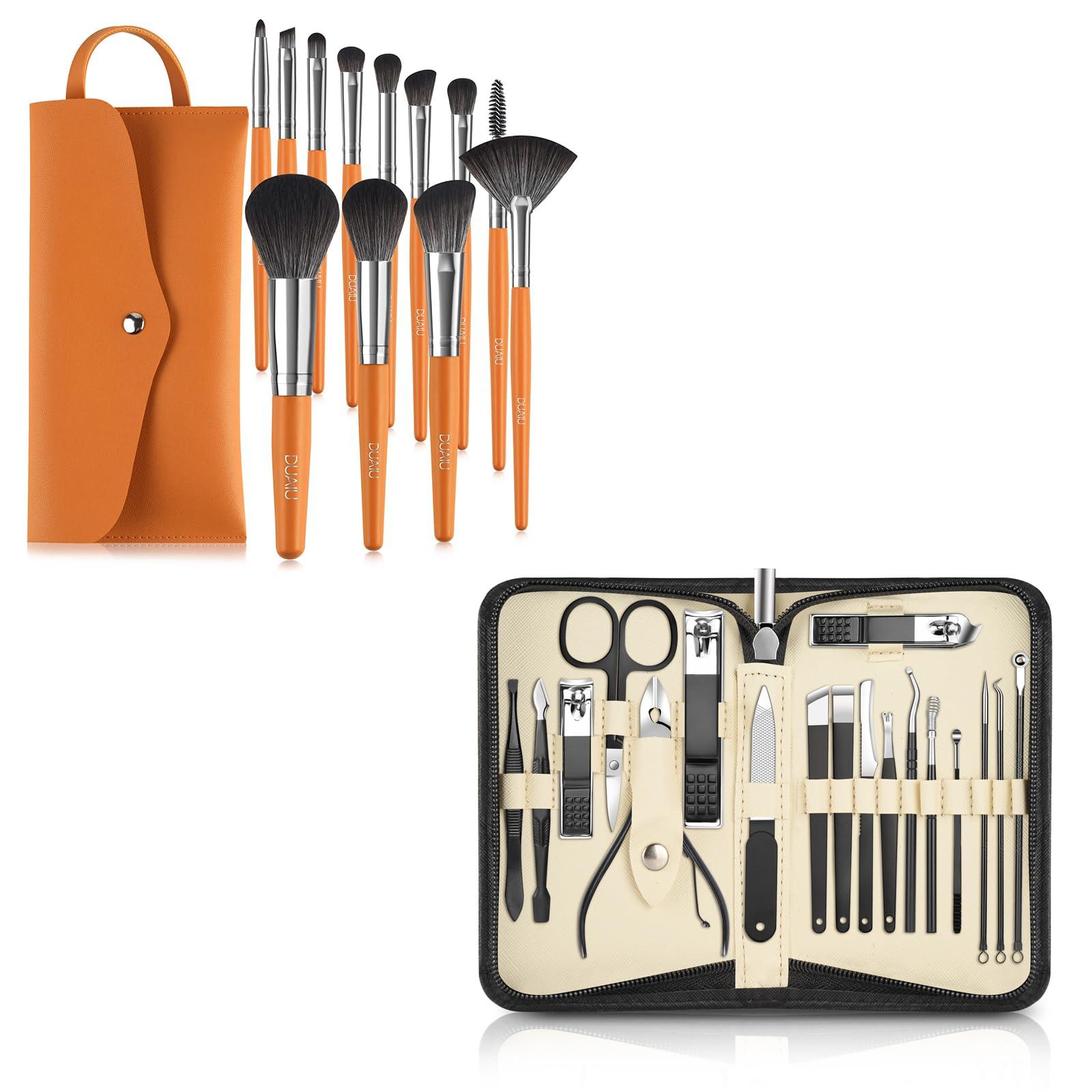 DUAIU 12PCS Makeup Brushes Set and 18PCS Manicure Kit with Travel Bag