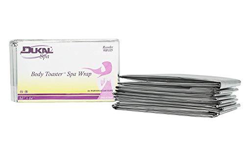 Body Toaster Spa Wrap Mylar foil wrap that captures and traps body heat to intensify any full body treatment. Compact packaging allows for convenient storage. Not made with natural rubber latex. Size is 52" x 84".