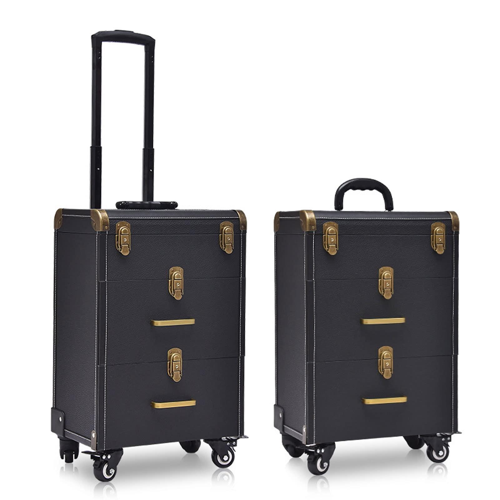 - Travel Makeup Train Case: The universal labor-saving 4 removeable 360 swivel wheels help to transport nail polish and makeup items with smooth and easy mobility. The telescopic pull handle is perfect for smooth pulling effortlessly.