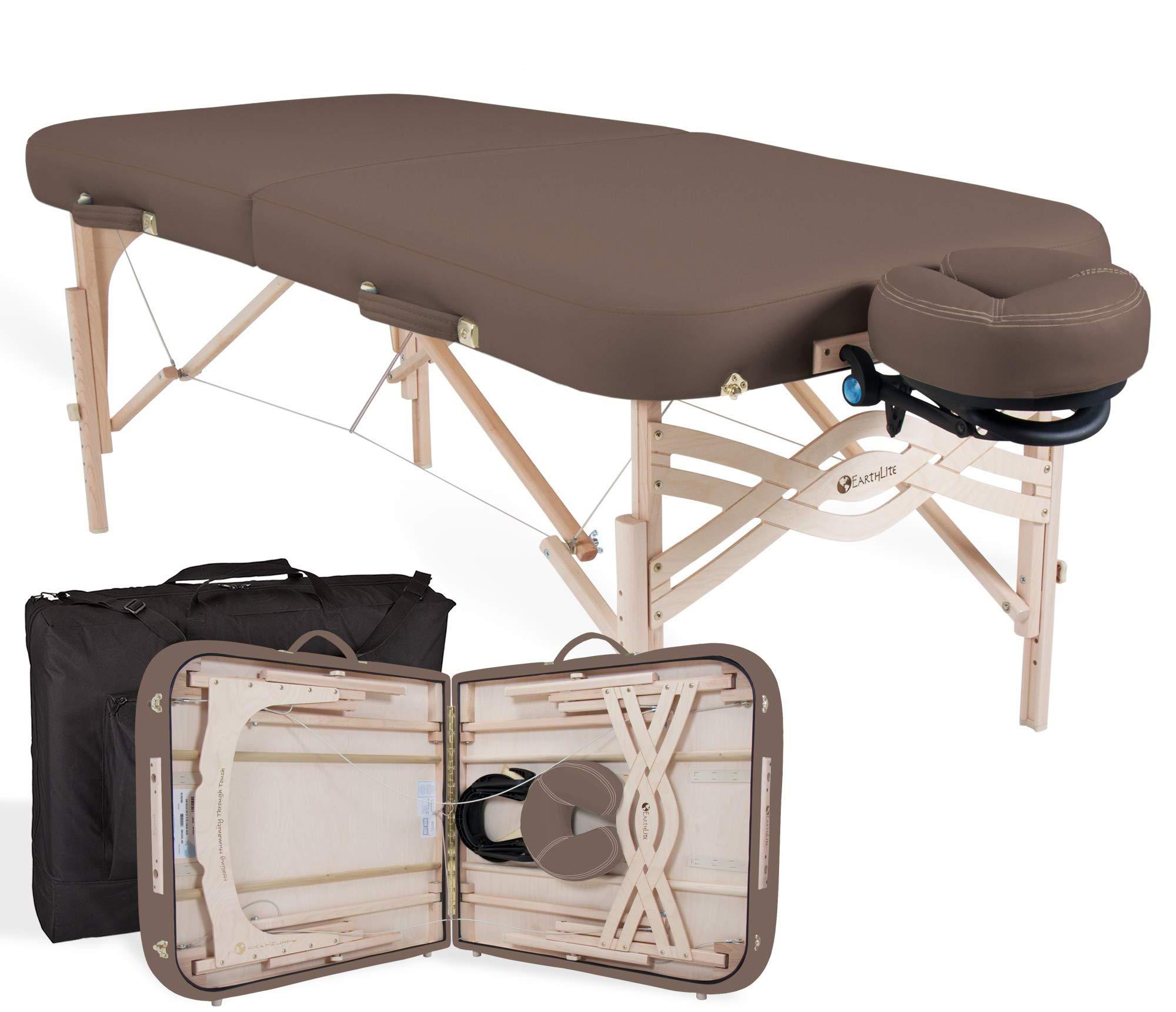EARTHLITE Premium Portable Massage Table Package SPIRIT - Spa-Level Comfort, Deluxe Cushioning incl. Flex-Rest Face Cradle & Strata Face Pillow, Carry Case (30/32 x 73) - Made in USA, Latte