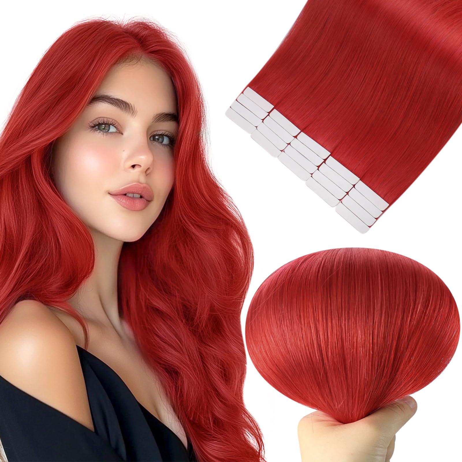 Easyouth Tape in Hair Extensions Human Hair Red Tape in Extensions Remy Human Hair Red Hair Extensions Tape in for Fashion Women 14Inch 40g 20pcs