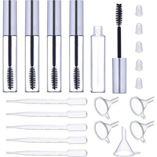 Package includes 5 pack empty mascara tube with brush, 5 pack rubber inserts, 5 pack funnels and 5 pack transfer pipettes, enough for spare or replacement.