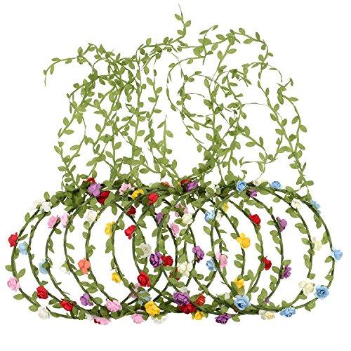 - Floral wreath headband: the flower is made from paper, and the leaves are made of fabric, each floral headband's diameter is approx. 6.7 inches/ 17 cm, can fit your head circumference well