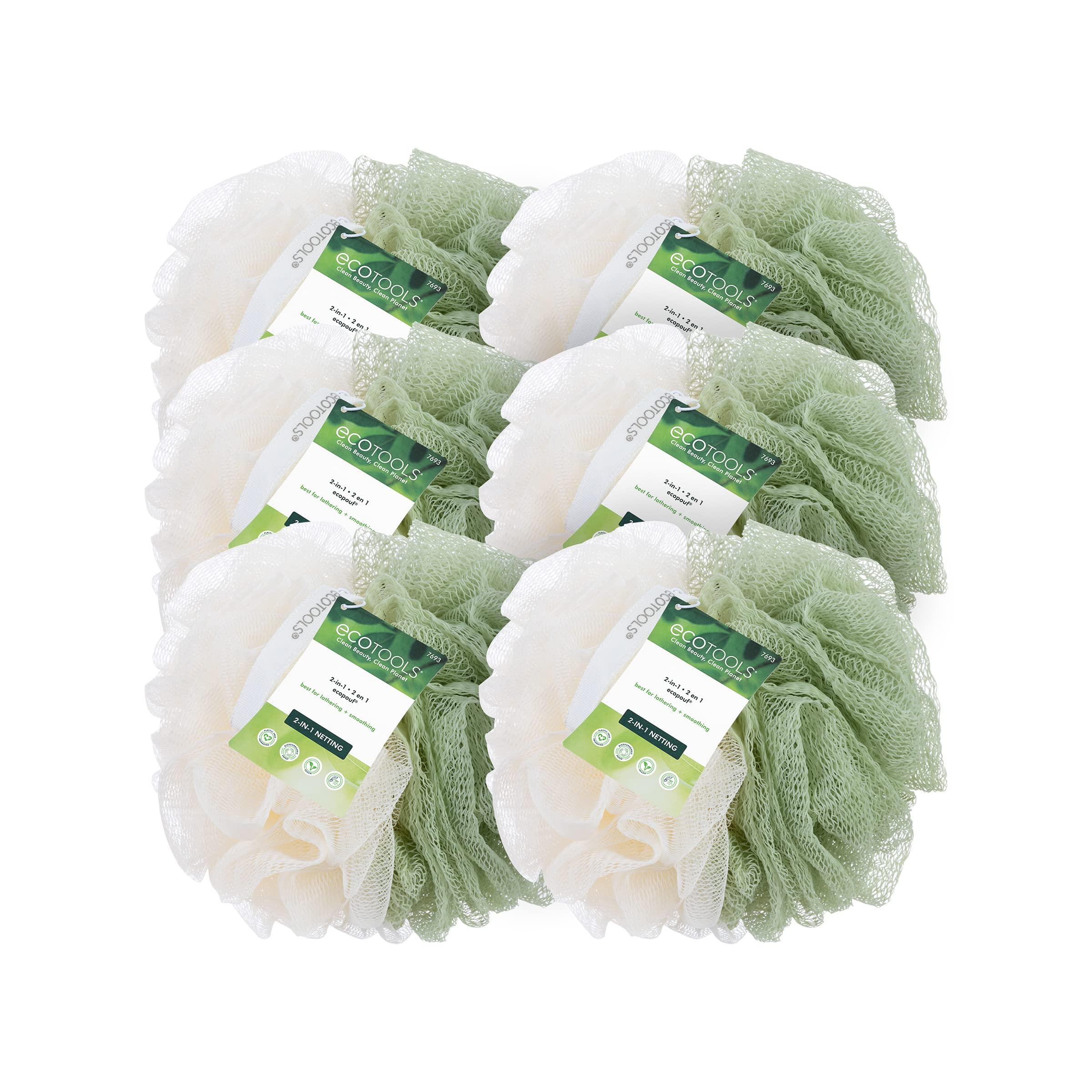 - Value Pack includes: (6) EcoTools Green 2-In-1 EcoPoufs that are dual-textured for both gentle cleansing and exfoliation. Pack size for easy replacement and sharing with your family. Never run out by using Subscribe & Save