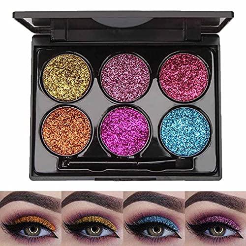 - Glitter eyeshadow palette with 6 glitter colors, smooth powder and high Pigmented texture.