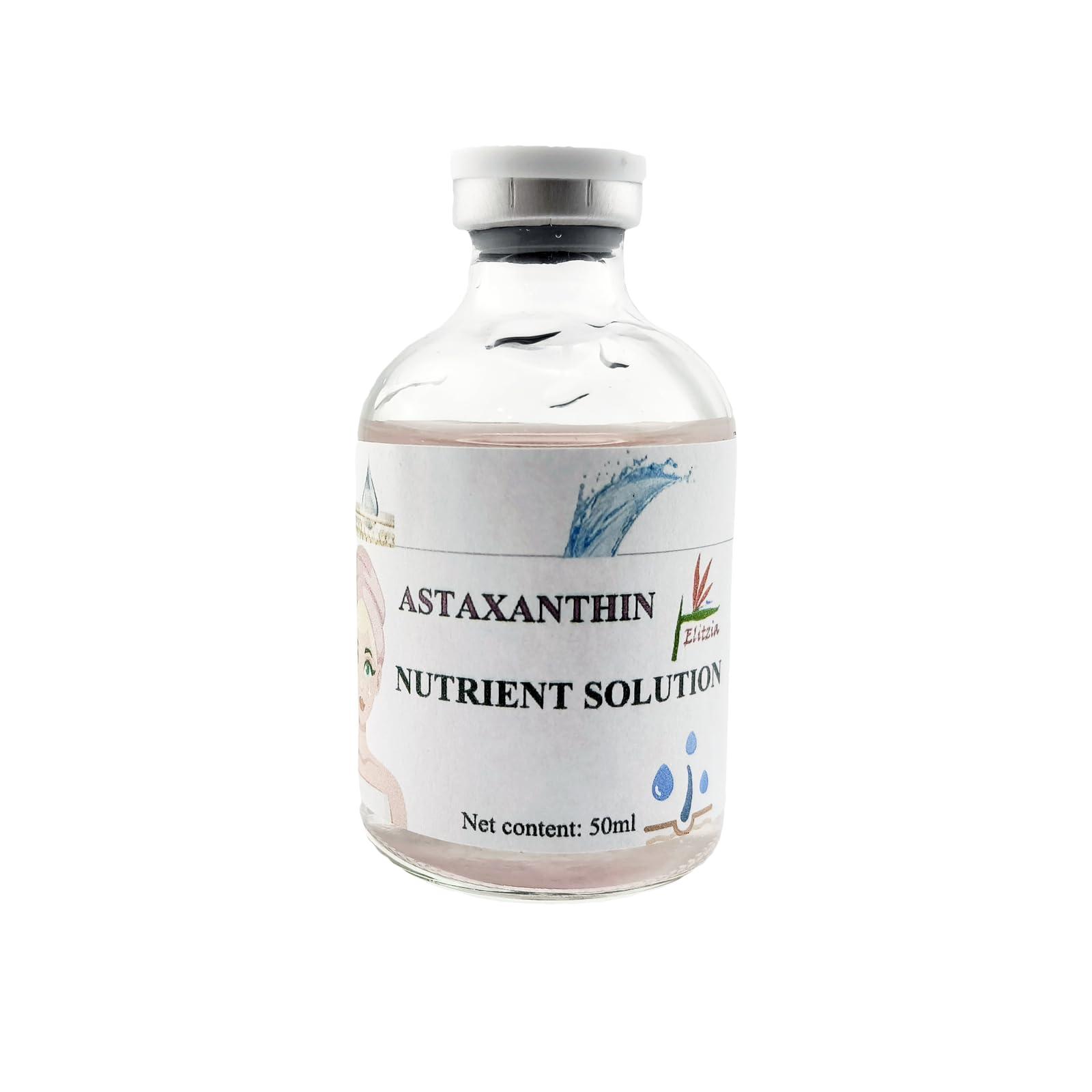 - Astaxanthin nutrient solution: water, propylene glycol, glycerol, xylitol glucoside, dehydrated xylitol xylitol, butanediol, dipotassium glycyrrhizinate, sodium hyaluronate. Containing xylitol moisturizing ingredients, it can improve skin dryness, replenish skin moisture, open pores, and moisturize the skin, making it easy for the skin to get rid of dryness, peeling, redness, and allergies.
