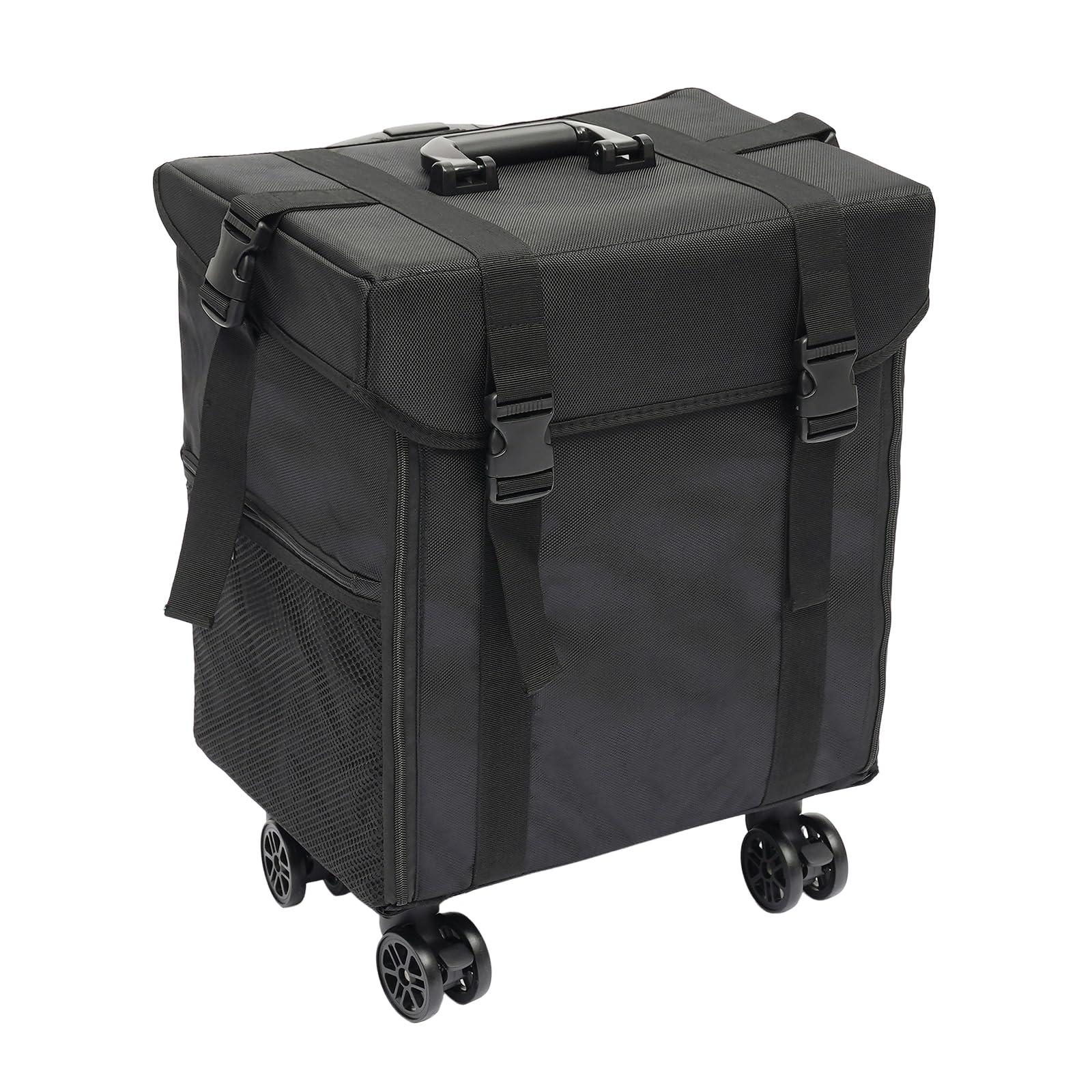 - Portable DesignThe reinforced top handle, retractable trolley bar, and four universal wheels make it easy to move the case up and down stairs, in and out of the car, and in the lift. Compare to traditional train case, our makeup trolley is made of light-weighted oxford fabric, reducing burden during transporting