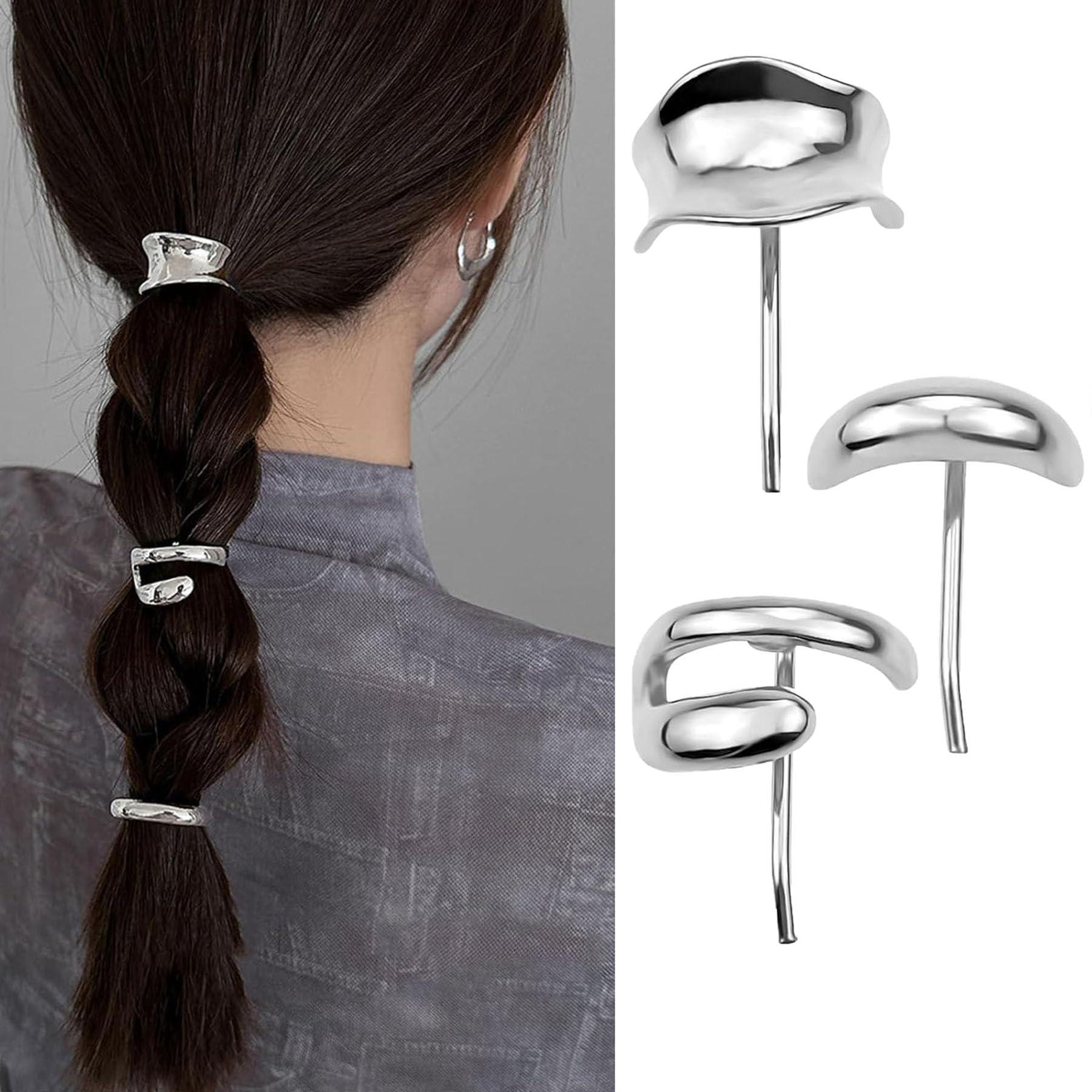 - Chic and Functional:Enhance your hairstyle effortlessly with our set of 3 elegant silver hair cuffs.