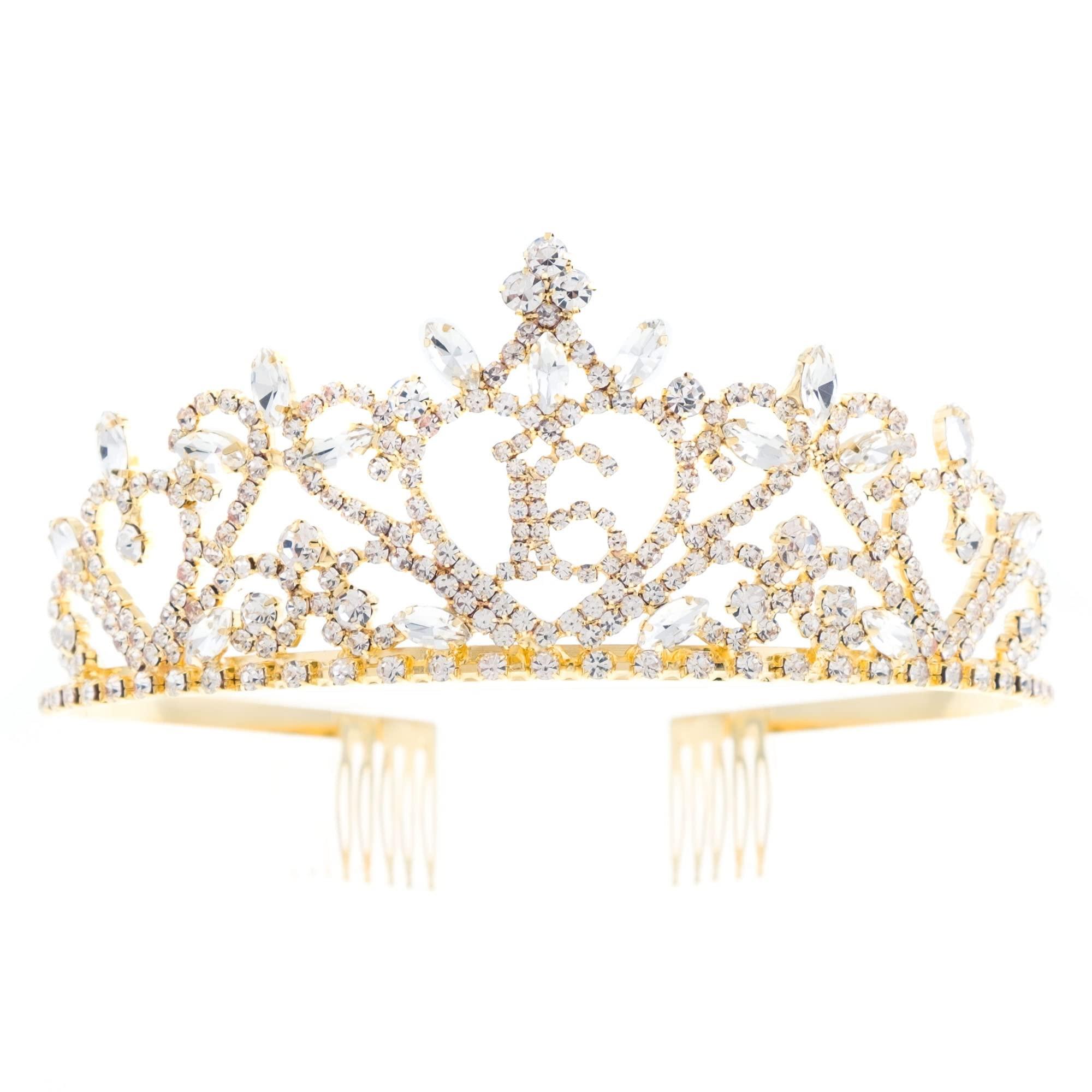 Ella Celebration 16 Tiara Rose Gold 16th Birthday Sweet 16 Party Crown (Gold Tiara)