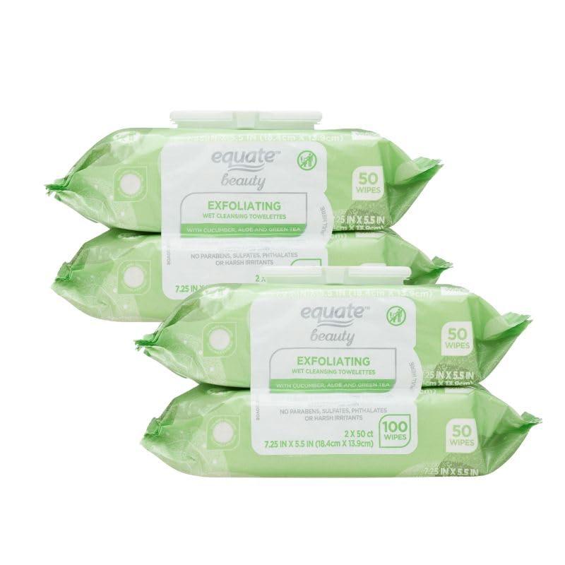 Give your skin a complete clean with Equate Beauty Exfoliating Wet Cleansing Towelettes. These soft towelettes gently wipe away makeup, sweat, oil and dirt leaving behind clean, soft and refreshed skin. Formulated with a blend of cucumber, aloe, and green tea, these towelettes are perfect for extra hydration and make a great addition to any makeup bag, gym bag or bathroom for convenient cleansing anytime, anywhere. The re-closable lid keeps the towelettes moist, sanitary and handy: just remove a towelette, gently wipes your face and/or body and close the package. Theres no need to rinse and your skin will be clean, glowing and ready for anything. Whether you need to cleanse, hydrate, or remove makeup, the Equate Beauty Exfoliating Wet Cleansing Towelettes are made with essential oils to help quickly and gently remove dirt, oil, and makeup in one easy step. Equate Beauty understands that beauty isn't just skin deep. With a large selection of the latest beauty products Equate Beauty helps you be your best you. makeup wipe makeup remover wipes makeup wipe remover makeup wipe removers makeup wipes remover makeup wipes