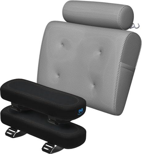 Experience ultimate comfort and support with our bundle featuring a luxurious bath pillow and ergonomic office chair arm covers by Everlasting Comfort. Our bath pillow offers a plush, contoured design that supports your head, neck, shoulders, and back, providing the ideal relaxation experience in any tub type. With strong suction cups, a breathable mesh cover, and quick-drying material, it elevates your self-care routine to spa-like levels. Pairing perfectly with our bath pillow, the office chair arm covers are designed to enhance your ergonomic setup, improving posture and comfort along the shoulders, neck, and back. Made of 100 percent pure memory foam topped with a cooling gel pad, they contour to the shape of your elbow and forearm, providing customized support and reducing fatigue.