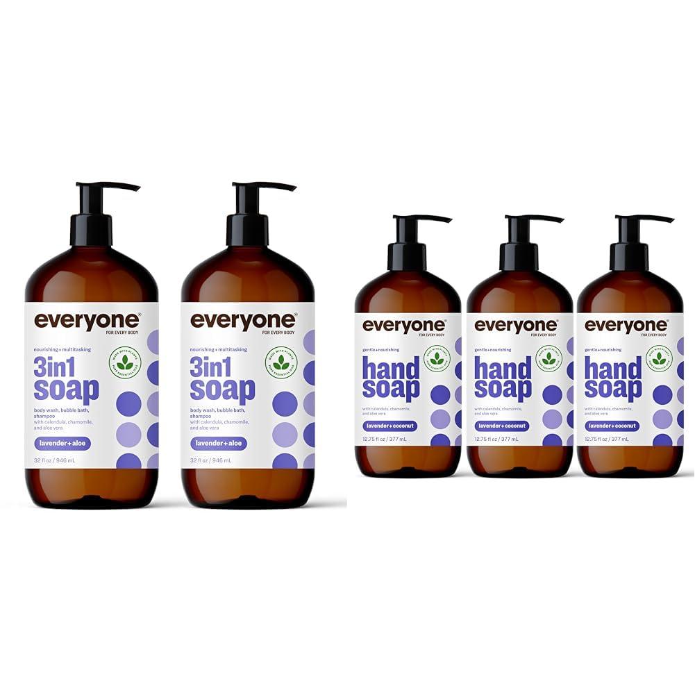 - Product 1: Contains: (2) 32 Ounce 100% Recycled Plastic Bottles of Everyone 3in1 Lavender and Aloe Soap. For a limited time, you may receive either bottle while we update our packaging. New Look, Same Great Product