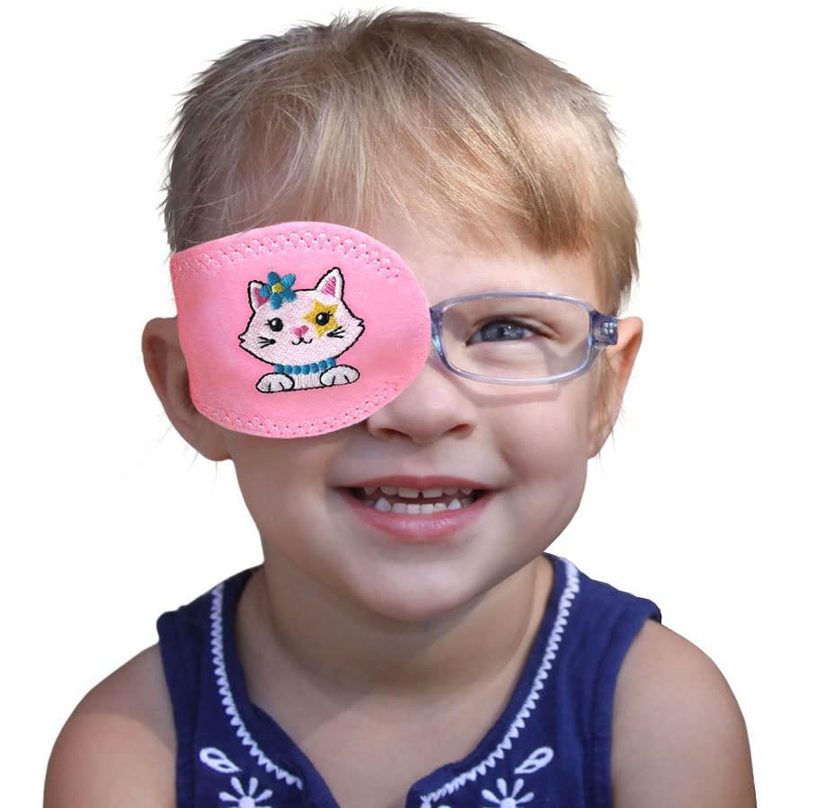 Ophthalmologist and Optometrist approved to treat Amblyopia (lazy eye) Comfortable hypo-allergenic cloth eye patch designed to be worn over glasses Affordable, reusable, and eco-friendly alternative to adhesive patches 1 1/2 inch (top to bottom) opening for child's lenses This machine washable style fits onto eye eyeglasses and provides comfortable eye coverage.