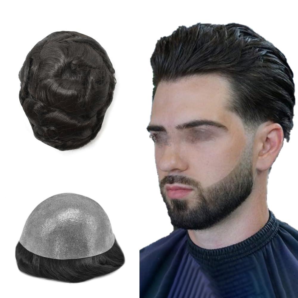 - Men Hair System Hair Material: quality human hair prosthesis,silky,soft & smooth,no tangle,minimum shedding.100%Hand Tied.Every detail is tested.32 mm slight wave, hair length about 6 inch, let you easily style, don't worry about hair is too short.