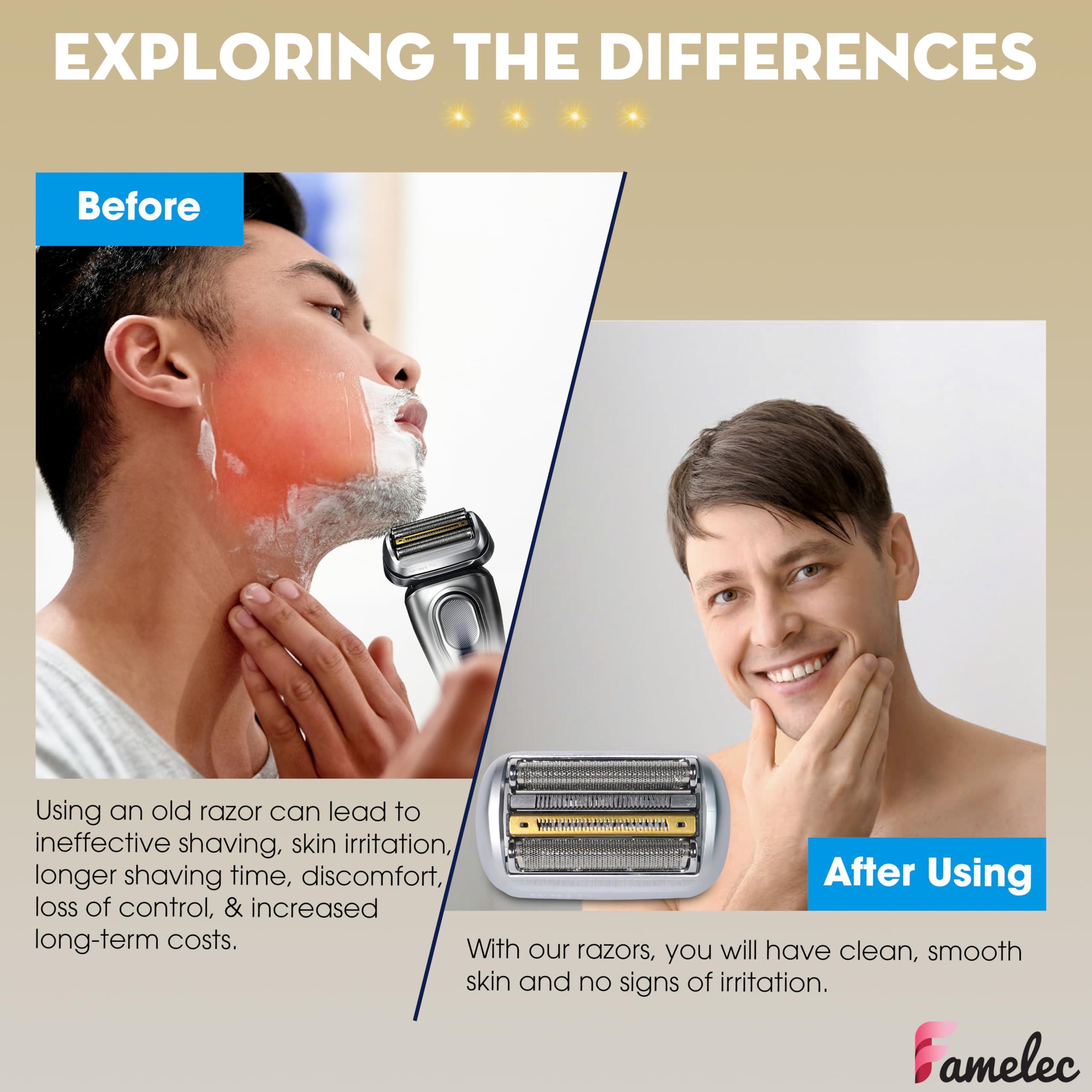 - High-quality Materials: Good quality materials and sturdy construction, providing a long service life. The product for series 9 replacement heads is safe and causes little irritation, making shaving the most comfortable. The stainless steel mesh fits the skin perfectly, works perfectly without hurting the skin, giving you a good experience. The unique reciprocating blade has a short initial run time. This product uses stainless steel mesh to prolong the life of the blade.