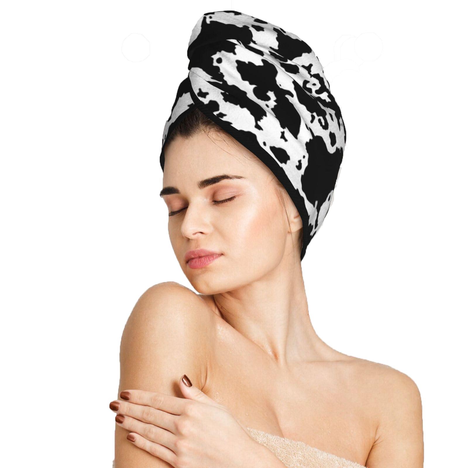 - Convenient: Black and White Hair Wrap Towels Have A Button On The Back And An Elastic Loop To Hold The Towels Well. Easy To Twist And Button With The Loop. It Holds It In Place And You Dont Have To Worry About The Hair Towel Wrap Falling Off Your Head When You Do Other Stuff Or Moving Around. Microfiber Hair Towels Are Ideal For Everyday Use At Home, At The Gym And Travel. It Is A Great Assistant In Facial, Bath, Makeup, Face Wash.
