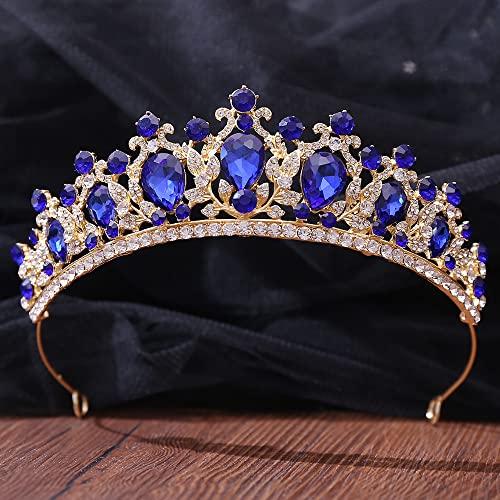 FASNAHOK Birthday Tiaras and Crowns for Women Sweet 16 Crown Bridal Tiaras for Wedding Crystal Princess Headpieces Prom Queen Hair Accessories Blue