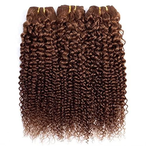 FEEL ME FEEL ME Light Brown Curly Human Hair Bundles Brazilain Deep Curly Hair Weave 3 Bundles Mixed Length (12 14 16) Unprocessed Virgin Human Hair Extension Kinky Curly Bundles Deals Total 300gram
