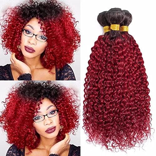 - FEEL ME Human Hair Ombre Color: 1b/burgundy 100% Human Hair Extension Brazilian Virgin Curly Hair Bundles Can be straightened, curled, bleached, dyed and styled as your own hair