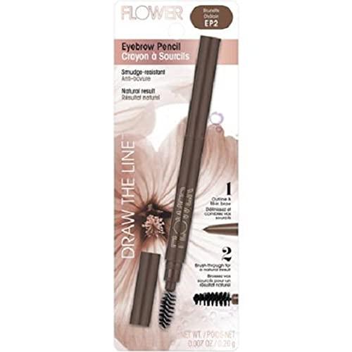 FLOWER BEAUTY Draw in the Line Eyebrow Pencil - Long-Lasting + Smudge-Resistant - Self-Sharpening + Built-In Spoolie - Brunette