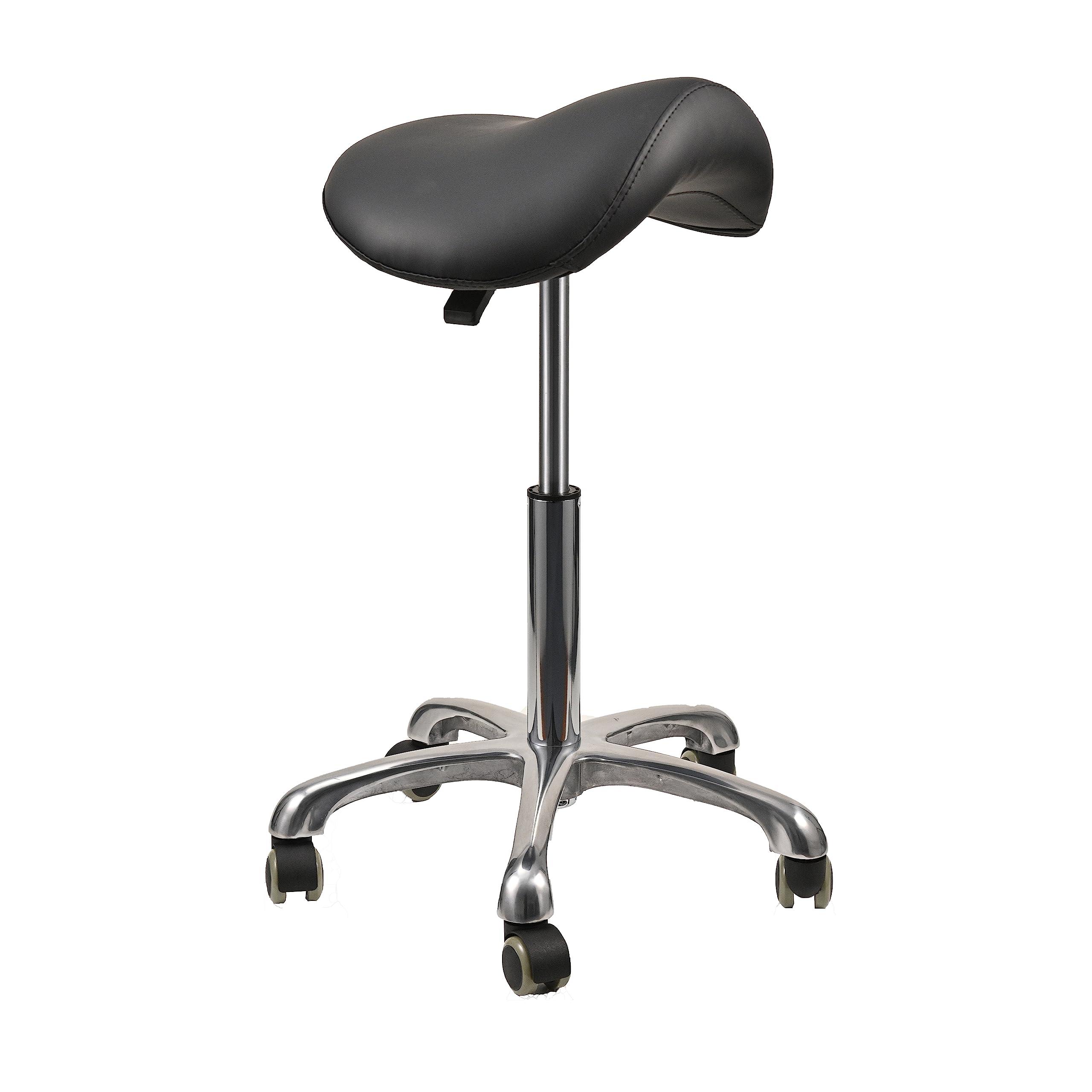 FOHGFNT Saddle Seat Stool Rolling Chair Drafting Hydraulic Swivel Adjustable Ergonomic Style with Foot Rest Wheels for Home Office Dental Clinic Spa Salon Kitchen Bar Use,Black