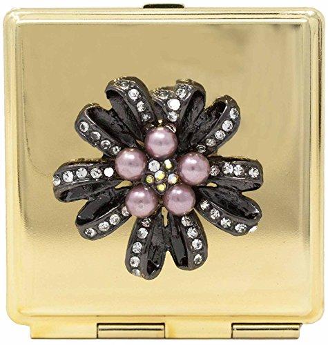 Featuring original Swarovski rhinestones that were custom hand set by our creative department on a variety of unique designs, our crystal collection represents the finest craftsmanship available in personalized compact mirrors. Two sided magnification: One side at regular magnification and the other at 5X magnification, allowing you to see in more detail when applying makeup, tweezing or styling hair. Ultra slim, light weight and easy to open and close thanks to a snap-easy latch design. Ideal for both personal and professional use.