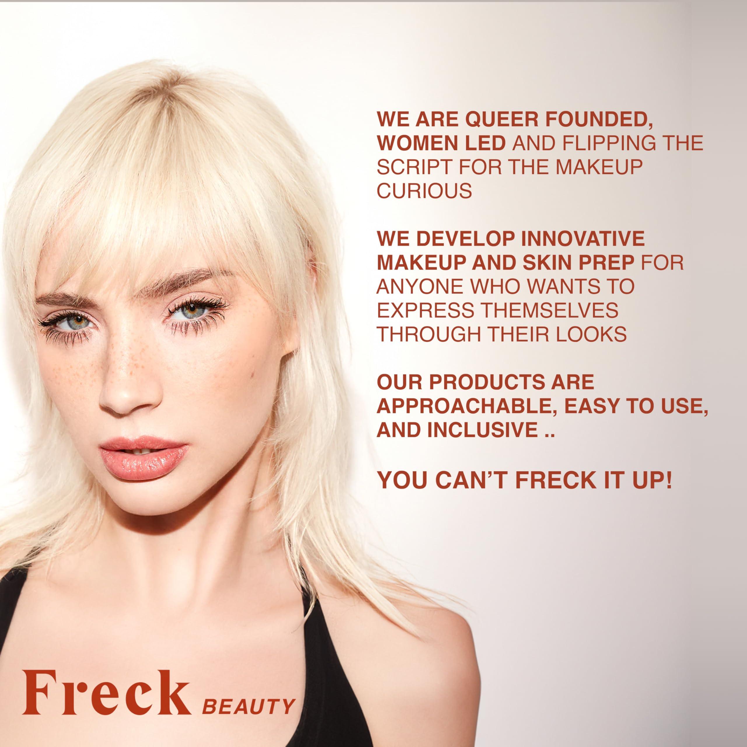 - WHO WE ARE: Freck Beauty is a queer founded, women-led brand that is flipping the script for the makeup curious with easy to use products that are approachable and inclusive. We develop innovative makeup and skin-prep for anyone who wants to express themselves through their looks, no makeup degree required .. you cant Freck it up!