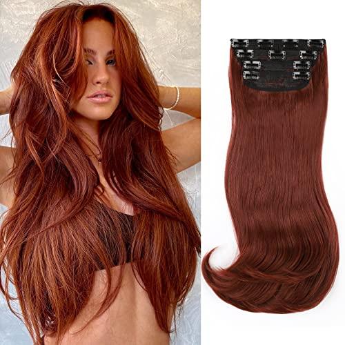 - Clip in Hair Extensions Material : FREEMEIGE copper red hair extensions products made of heat resistant synthetic fiber.Tangle free,silky, soft,natural,long service life with wide-toothed comb.This copper red clip hair extensions soft and smooth, easy to comb and not easy to knot, suitable for women and girls with less hair,Wear it to make your hair look more natural.