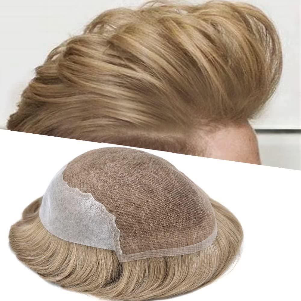 French Lace Hair System for Men 100% Human Hair Replacement Mens Toupee Bleached Knots Hair Units for Man Lace with PU Men Wigs #20 light ash blonde