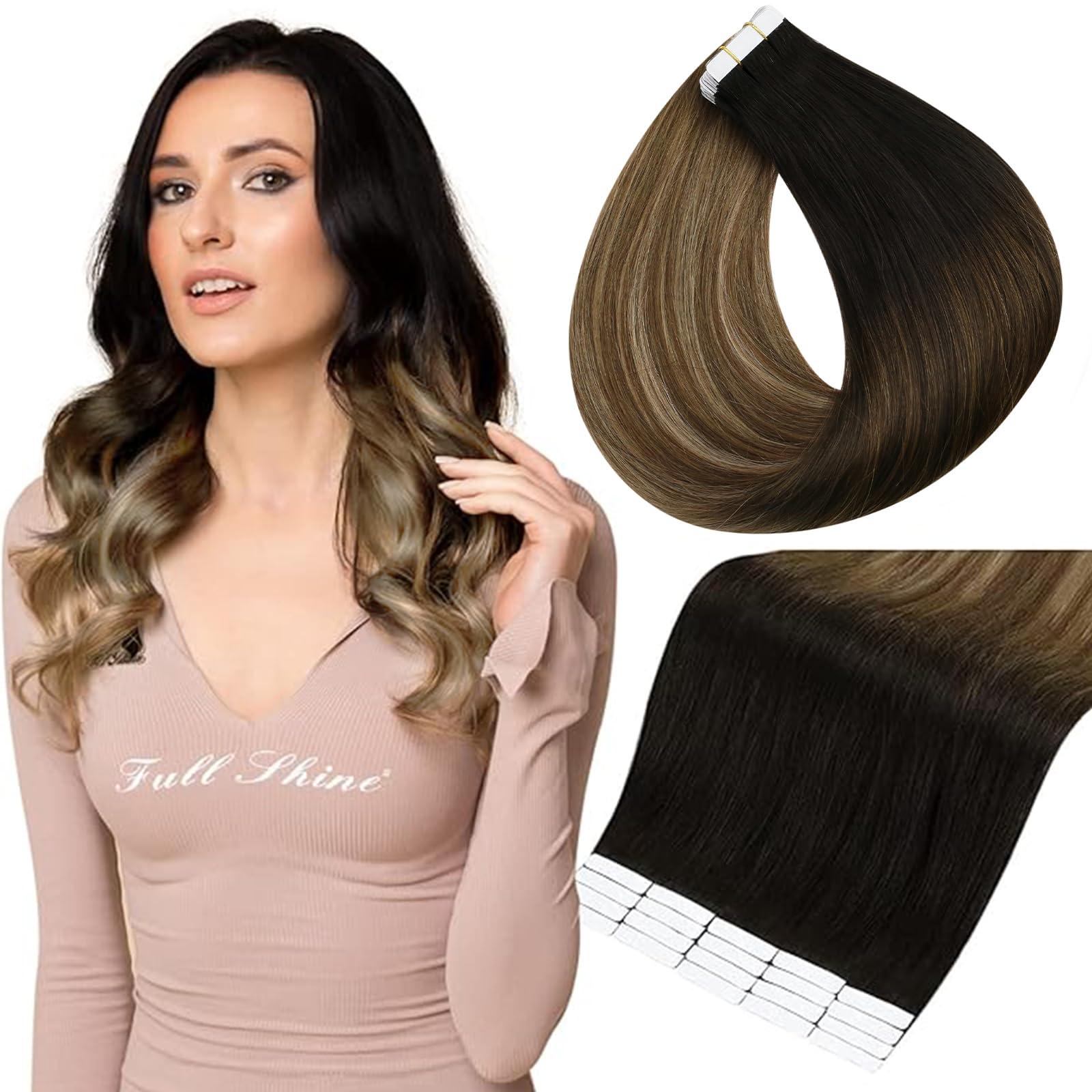 Full Shine Full Shine Invisible Tape in Hair Extensions Human Hair 18 Inch Off Black Fading to Chestnut Brown and Honey Blonde 20 Pcs Seamless Tape in Extensions Skin Weft Hair Extensions Real Human Hair 50g