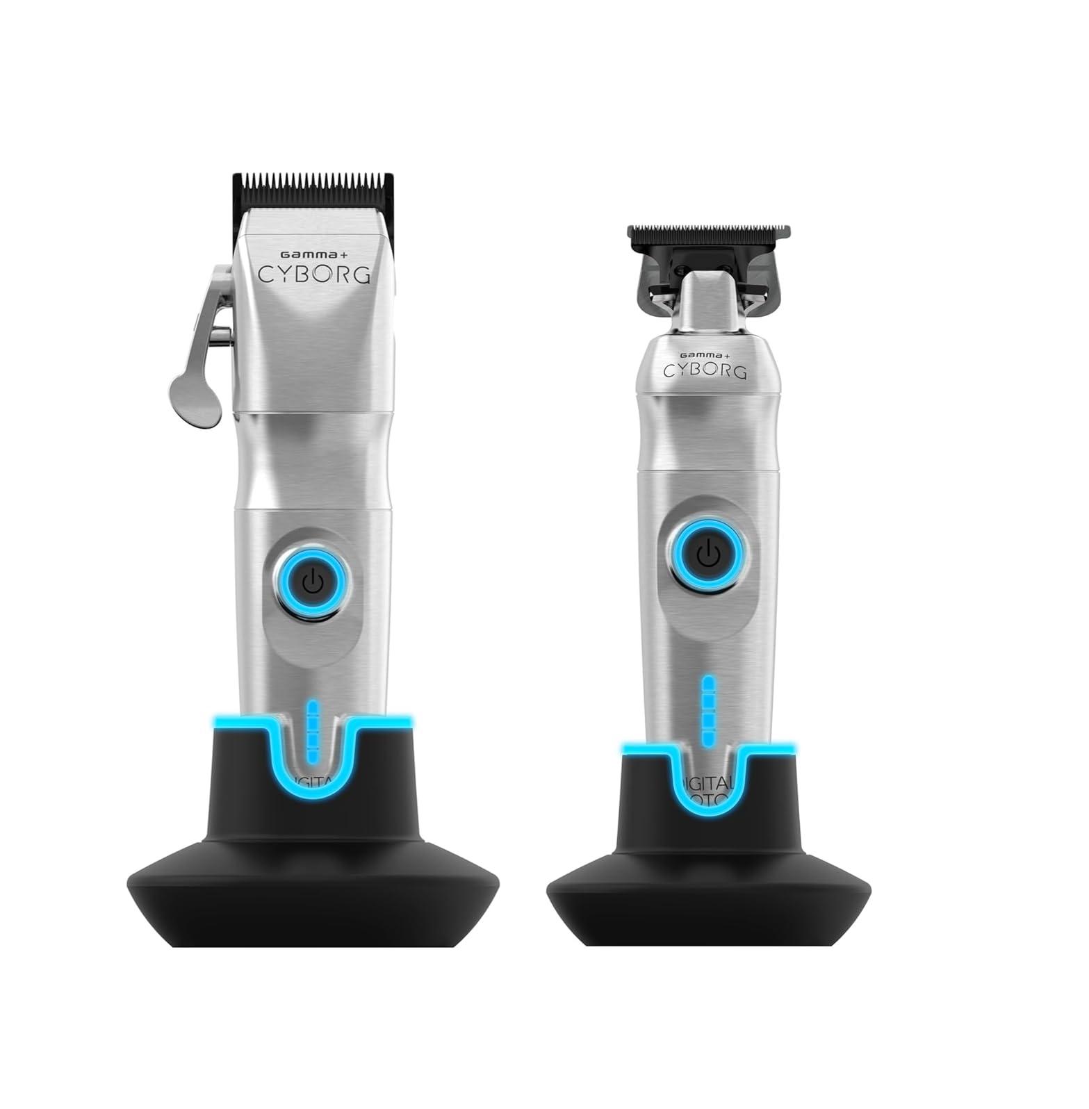 GAMMA+ GAMMA+ Cyborg Professional Metal Hair Clipper and Trimmer Bundle Deal with Digital Brushless Motor